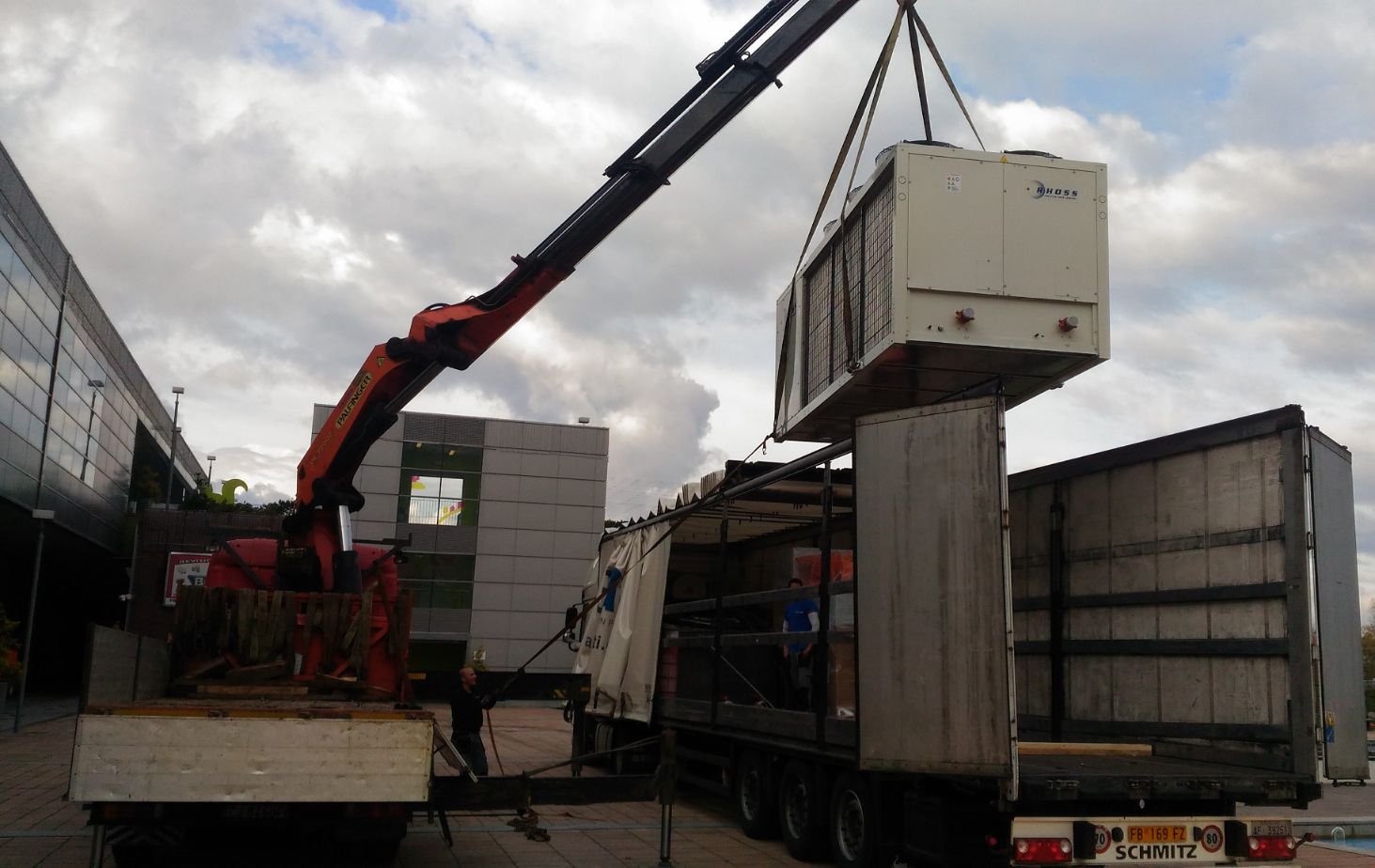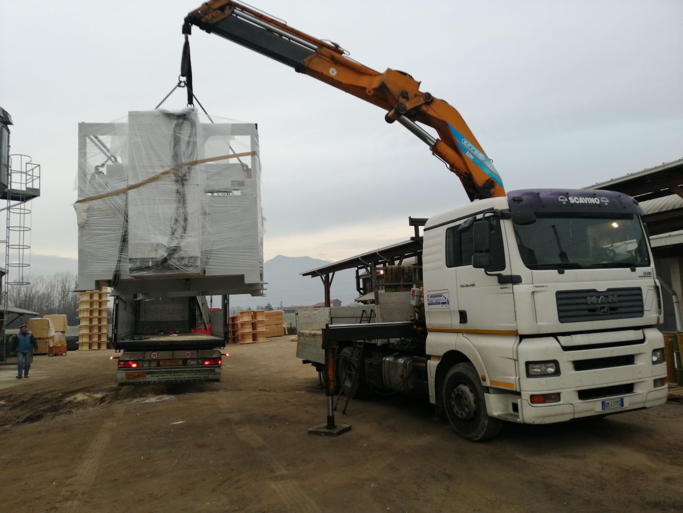 Si dispone di mezzi con gru per la movimentazione di macchinari fino a 10 ton.